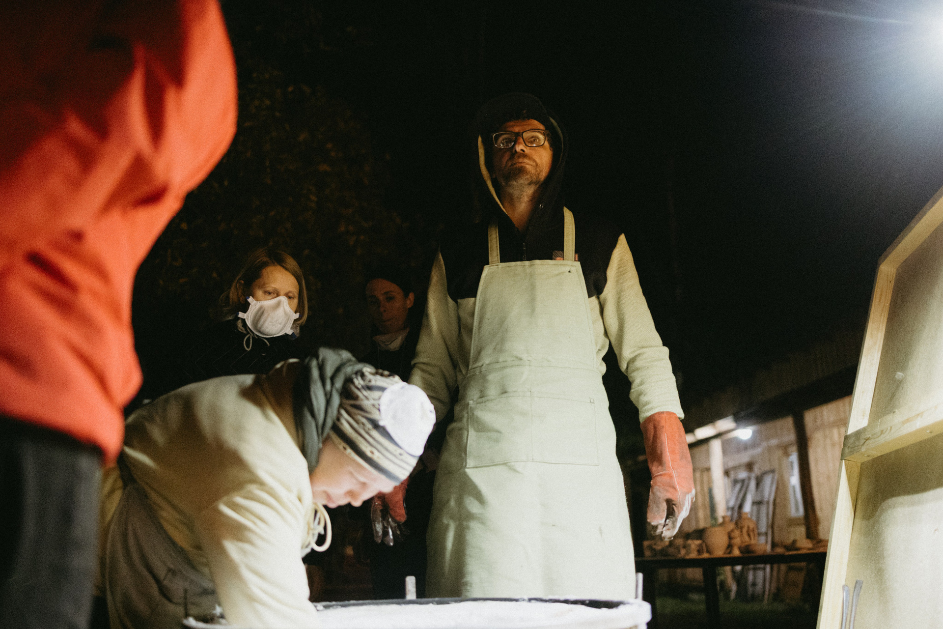 Чудесные 3 дня. Всё же природа и трактор — вот всё, что мне нужно в жизни. Ну ещё пруд, а может ещё поле картошки. Может ещё курочки, только вот петуха не сильно хочется заводить, мне не нравится, как они кричат. Я всё шутки шучу, но как я знаю, в каждой шутке есть доля правды. Это место называют «Новые земли» — здесь проводят дровяные обжиги, длительностью несколько суток, участники дежурят посменно, даже ночью. Я, конечно, восхищаюсь отвагой этих нереальных людей, я очень нетерпеливая, мне чем быстрее результат, тем лучше. Собственно, поэтому поехала на Раку обжиг. 3-4 часа в печи и изделия готовы, да ещё и обжиг то какой интересный, восстановительный. Можно металлы восстанавливать и делать «мильард» всяких интересных штук. Правда за конечный результат никто не отвечает (только вселенная, и то вряд ли). Парочка ваз потрескалась, остальные имеют место быть. Скажу честно, я осталась в полнейшем восторге.